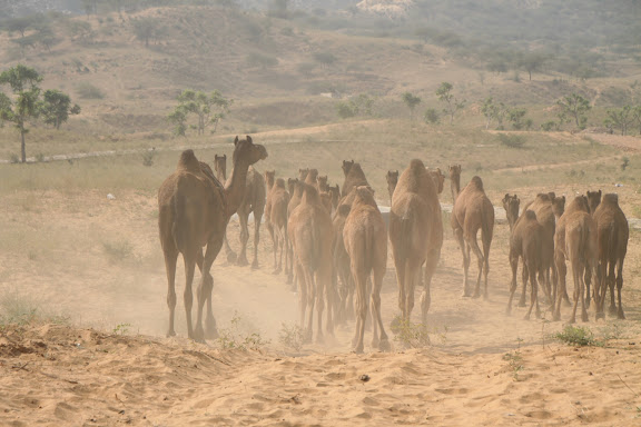 Jetzt weiß ich auch, woher gestern der "Gegenverkehr" der Kamelherden kam . Am Tag werden die Herden in das nur von Akazien bewachsene Wüstengebiet getrieben.